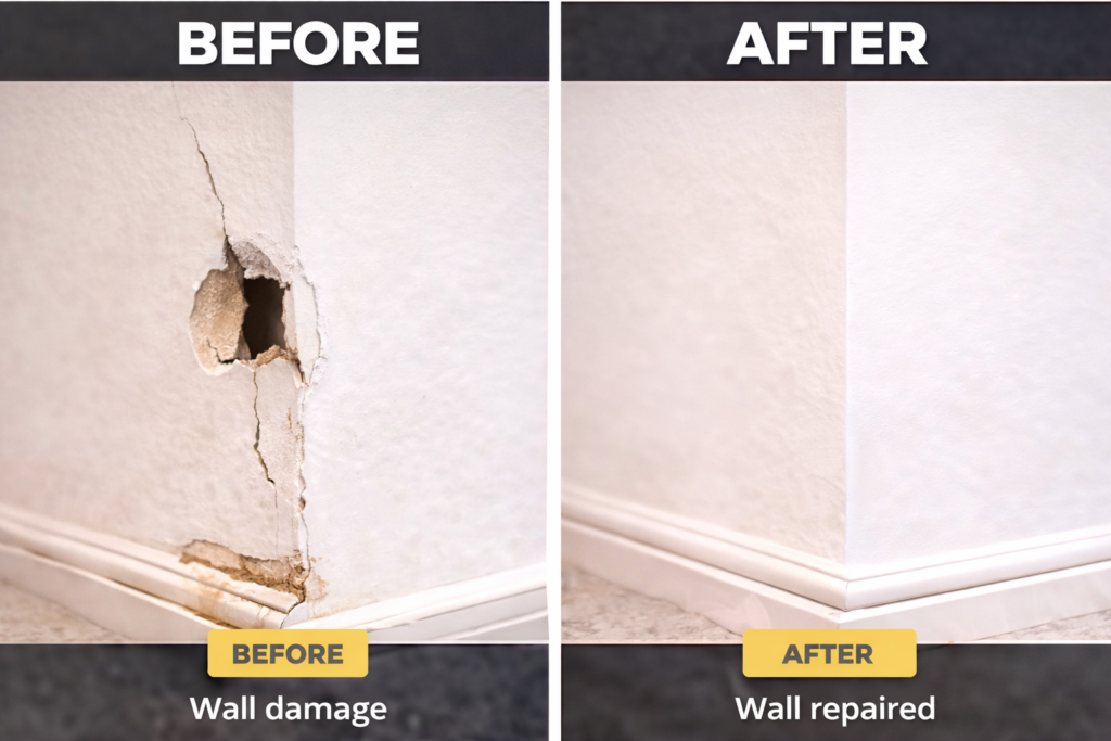 We provide small repair and finishing services for homes in Carlow. From fixing damaged walls and filling holes to repairing skirting boards, doors and other interior elements. Our handyman service helps keep your home neat, safe and well maintained.